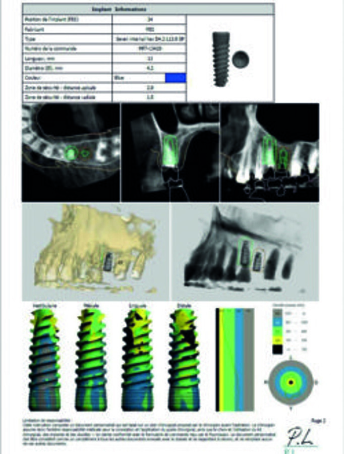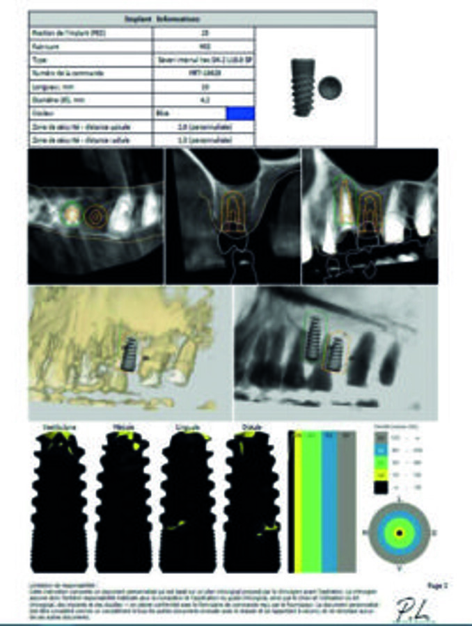 Un rapport chirurgical détaillé reprend la proposition de la planification faite par l’équipe du laboratoire de prothèse ainsi que les informations sur l’implant. Il est envoyé au praticien, accompagné d’une vidéo 3D pour bien visualiser le positionnement des implants.