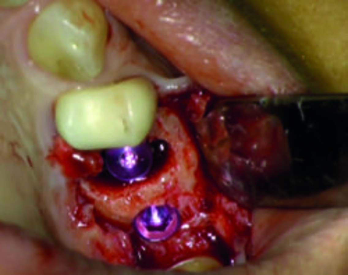 Usage des ostéotomes car la 26 est positionnée sous le sinus. Utilisation de la technique de Summers.