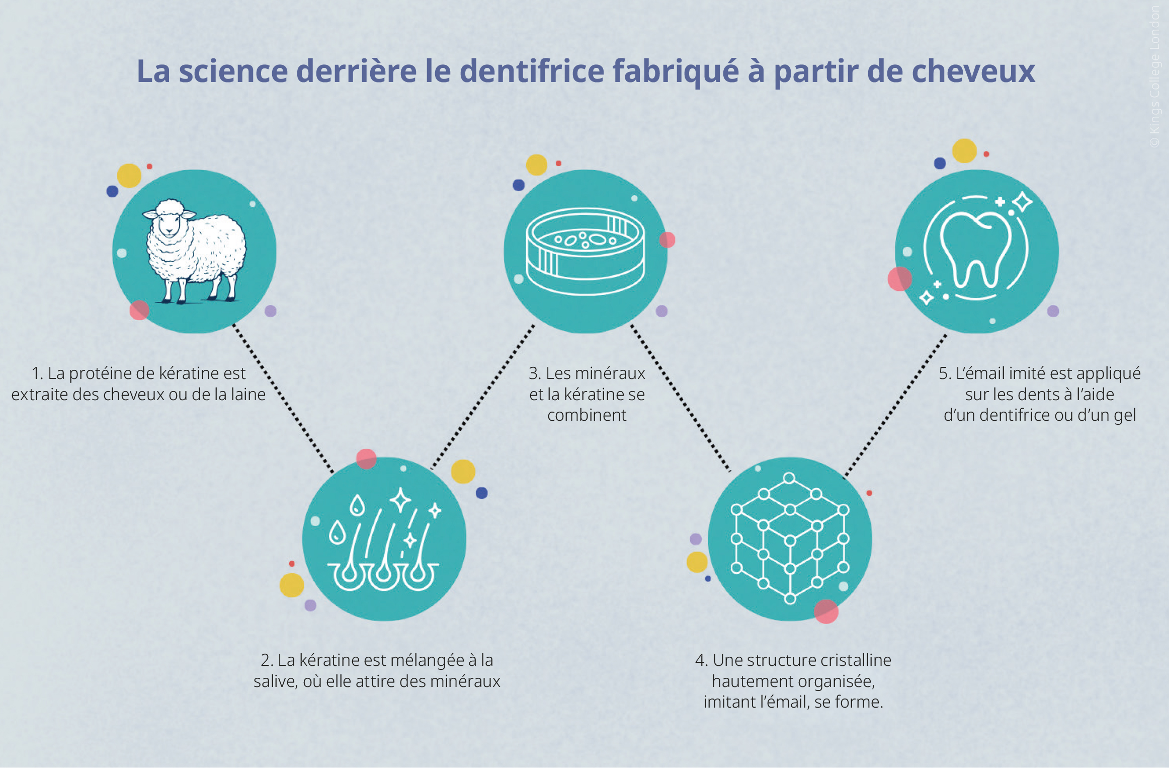 Le processus par lequel la kératine issue de la laine et des cheveux est transformée en une substance semblable à l’émail, pouvant être intégrée dans un dentifrice ou un gel.