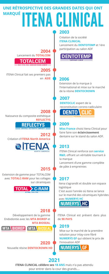 Itena Clinical est fière de pouvoir dire qu'elle n'a pas attendue d'avoir dix-huit ans pour entrer dans la cour des grands ! Pour preuve, une rétrospective des grandes dates qui ont marqué l'histoire de la société.