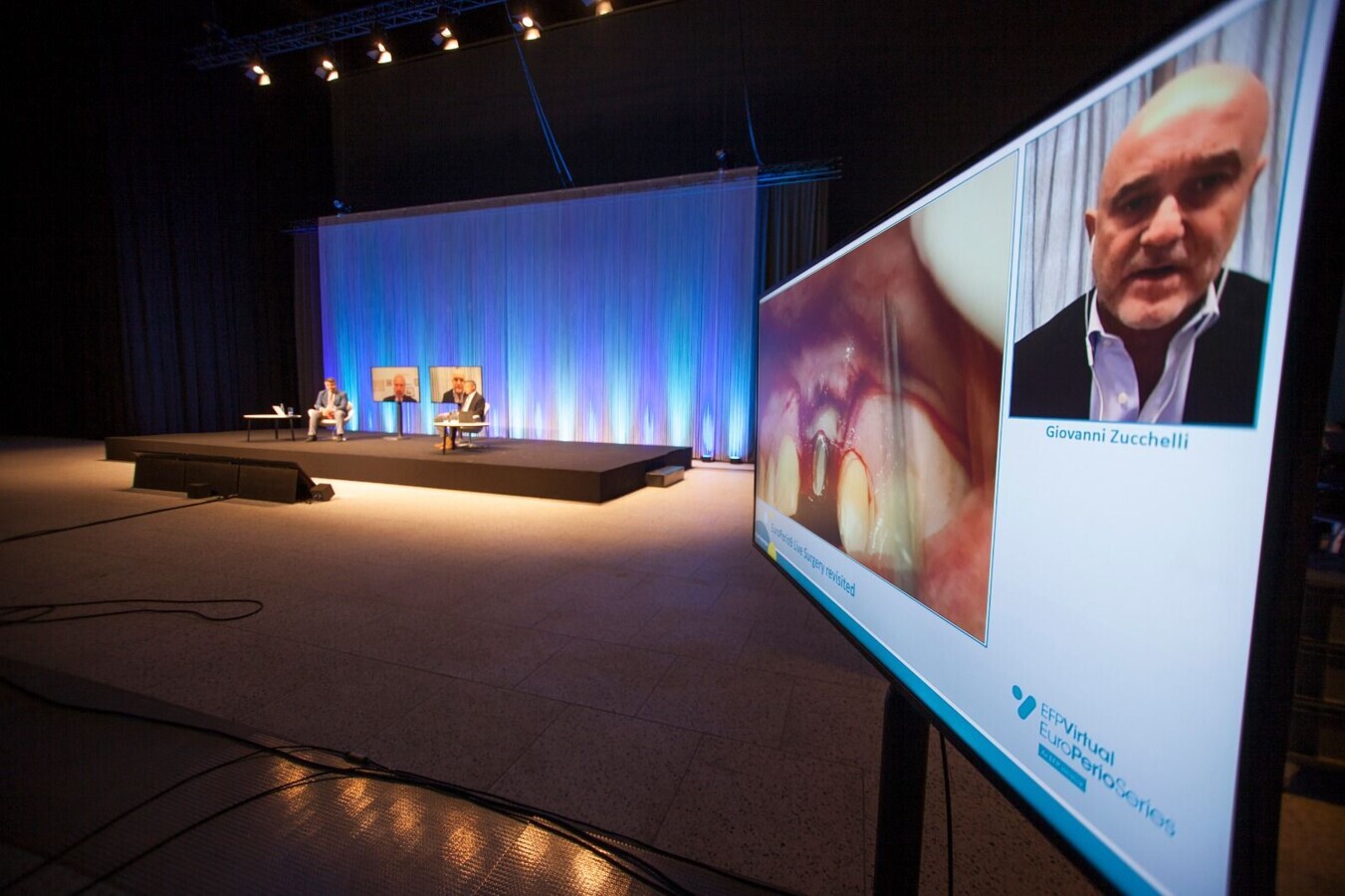 Animée par le professeur Phoebus Madianos, président du comité EuroPerio10, le professeur David Herrera, président scientifique d'EuroPerio10, et le professeur Nicola West, trésorier d'EuroPerio10 et secrétaire général de l'EFP, la première session de la série EuroPerio a été diffusée en direct du Bella Center de Copenhague, où se déroulera EuroPerio10. Pendant 5 heures, six éminents experts ont présenté et discuté de cas cliniques portant sur la chirurgie mucogingivale autour des dents et des implants sous le titre « Chirurgie mucogingivale - d'Amsterdam à Copenhague ». À l'aide d'un outil de sondage interactif, le public a eu la possibilité de voter pour les options de traitements possibles après que chaque orateur ait exposé les problèmes spécifiques du cas en question. Chaque cas a ensuite été discuté en profondeur par le panel, après quoi l'orateur a rejoint le débat pour expliquer son approche thérapeutique réelle.