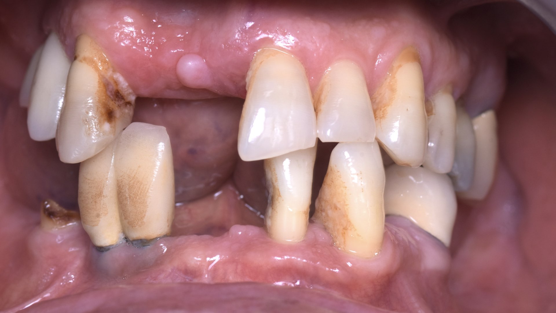 Trois mois après la dernière chirurgie (Fig. 12), le patient revient pour contrôler la cicatrisation, l’ostéointégration, et prendre l’empreinte. Les tissus mous sont sains et le patient maintient une hygiène idéale, ce qui est essentiel pour préserver la santé des tissus péri-implantaires.