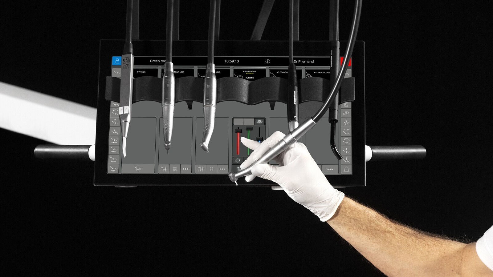 Cet équipement dentaire, fabriqué par la société danoise XO CARE , est équipé d’un ordinateur intégré, d’une console instrumentale à écran tactile intelligent et intuitif et d’un navigateur similaire. La technologie de l’unit dentaire vous offre, à vous et à votre clinique, de toutes nouvelles options pour la gestion des séquences de travail des instruments, ainsi qu’un accès direct à des solutions logicielles numériques faciles à gérer directement sur l’écran tactile du navigateur. Vous pouvez même connecter des systèmes de gestion des patients, des scanners intra-oraux, des caméras et bien d’autres choses encore par l’intermédiaire du navigateur en combinant et en gérant votre équipement dentaire en un seul endroit.