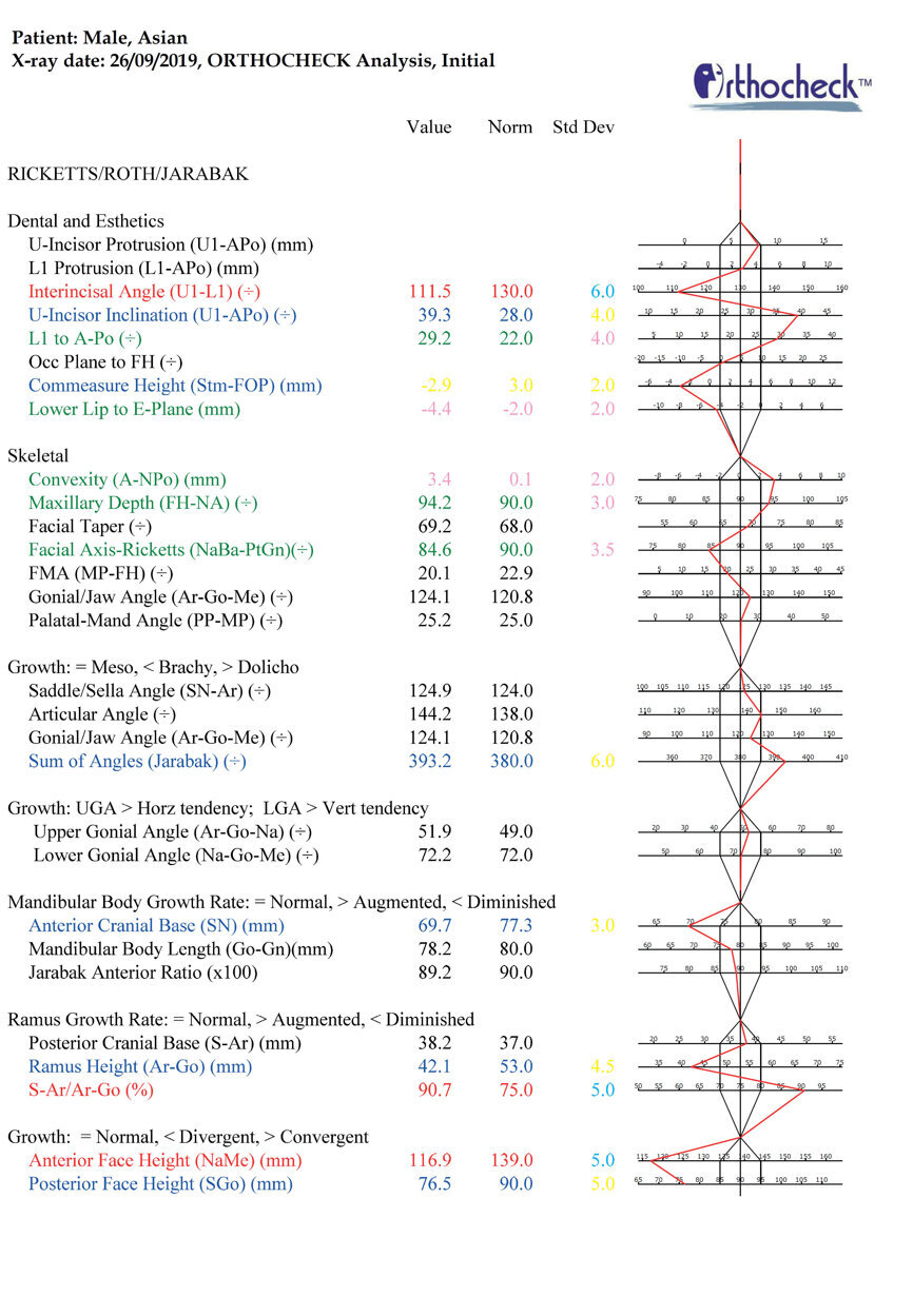 Le centre de radiologie de Tel Aviv utilise le système Orthocheck. Il est équipé d’un logiciel d’aide au diagnostic9.1–9.3 qui rapporte des données basées sur l’interprétation des clichés. Ainsi, pour la téléradiographie de profil, l’analyse céphalométrique faite par l’ordinateur donne les conclusions pour l’analyse orthocheck et pour l’analyse selon Ricketts.