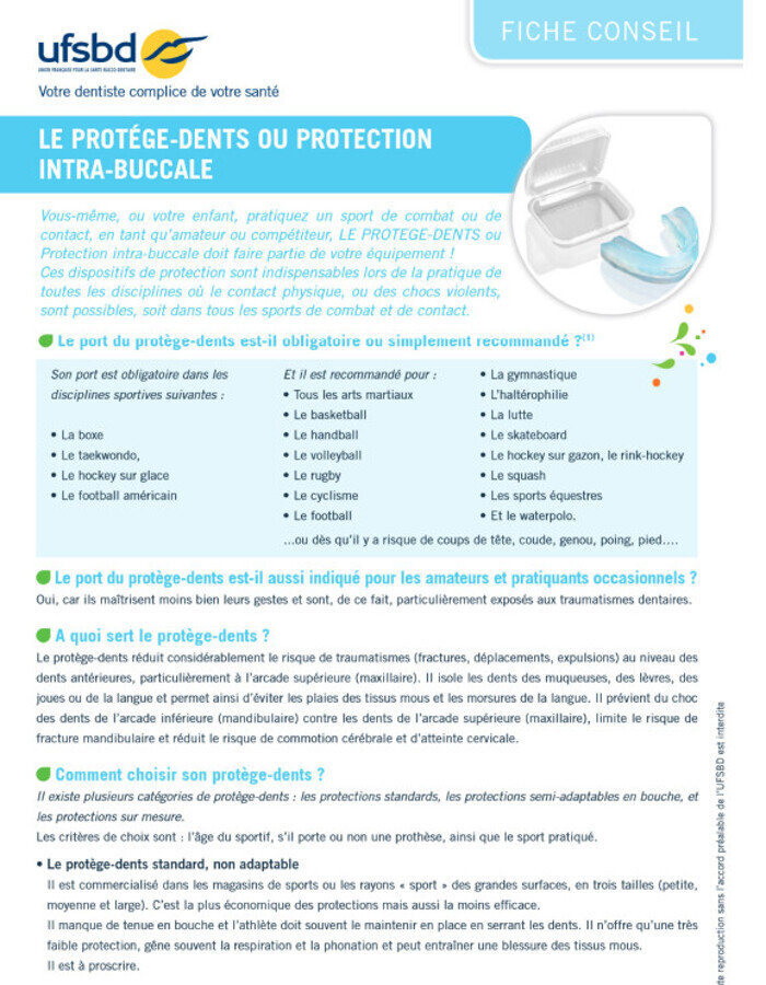 Par mesure de prévention, dans les sports à risque, le protège-dents devrait être systématique afin de prévenir les accidents !