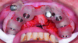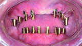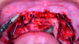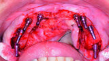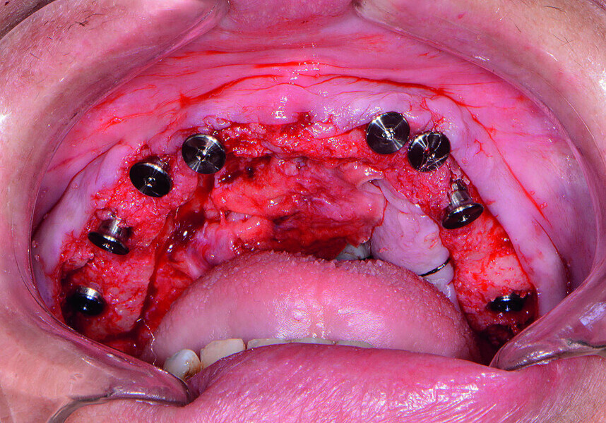 Fig 15 Implants et coiffes de cicatrisation entourés du matériel de greffe