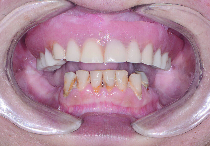 Fig 2 Vue préopératoire avec écarteur de lèvres, sans prothèse