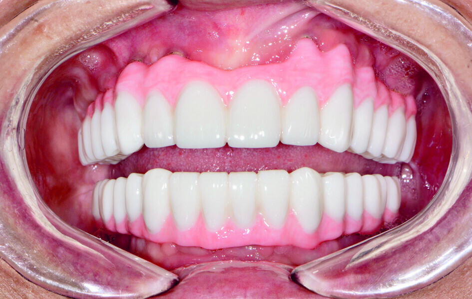 Fig 16 Prothèses immédiates rebasées par un matériau souple