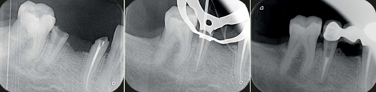 1. Orifice Opener court de 18 mm, n° 30 et conicite 8 % pour l’évasement du tiers cervical et la relocalisation des entrées canalaires.