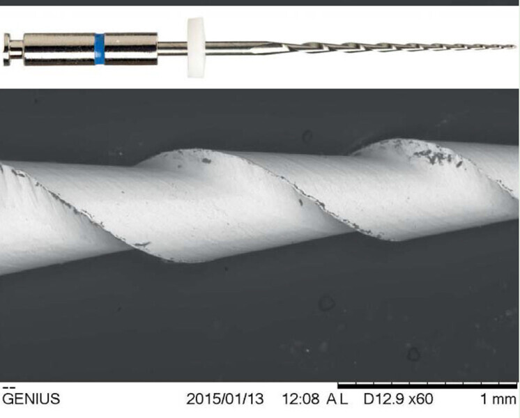 Fig. 5 : Grossissement d’une lime Genius, spiralée a l’endroit (c Dr Carlos Spironelli Ramos).
